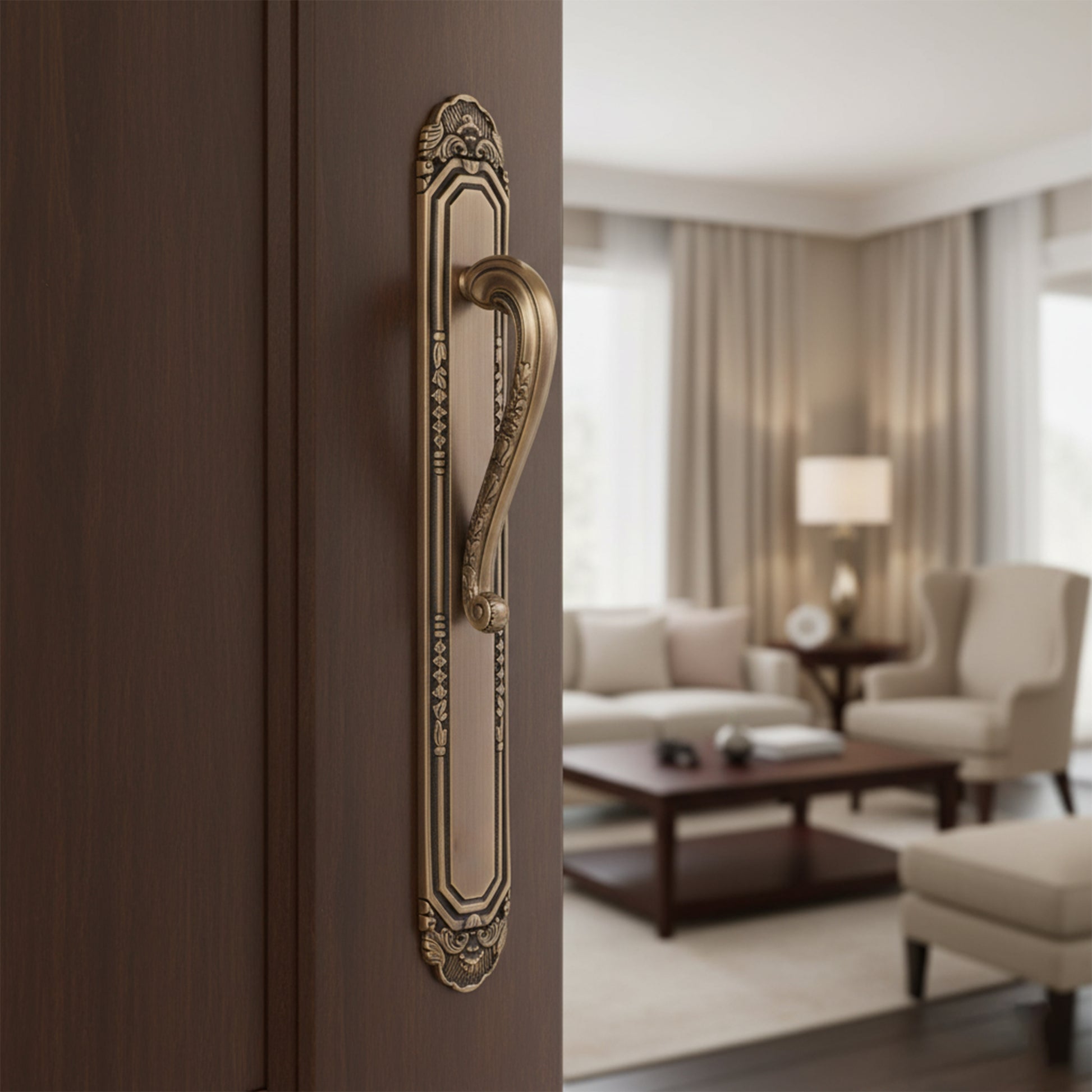 Carving Antique Plate Brass Door Handle: Ornate Entrance Hardware