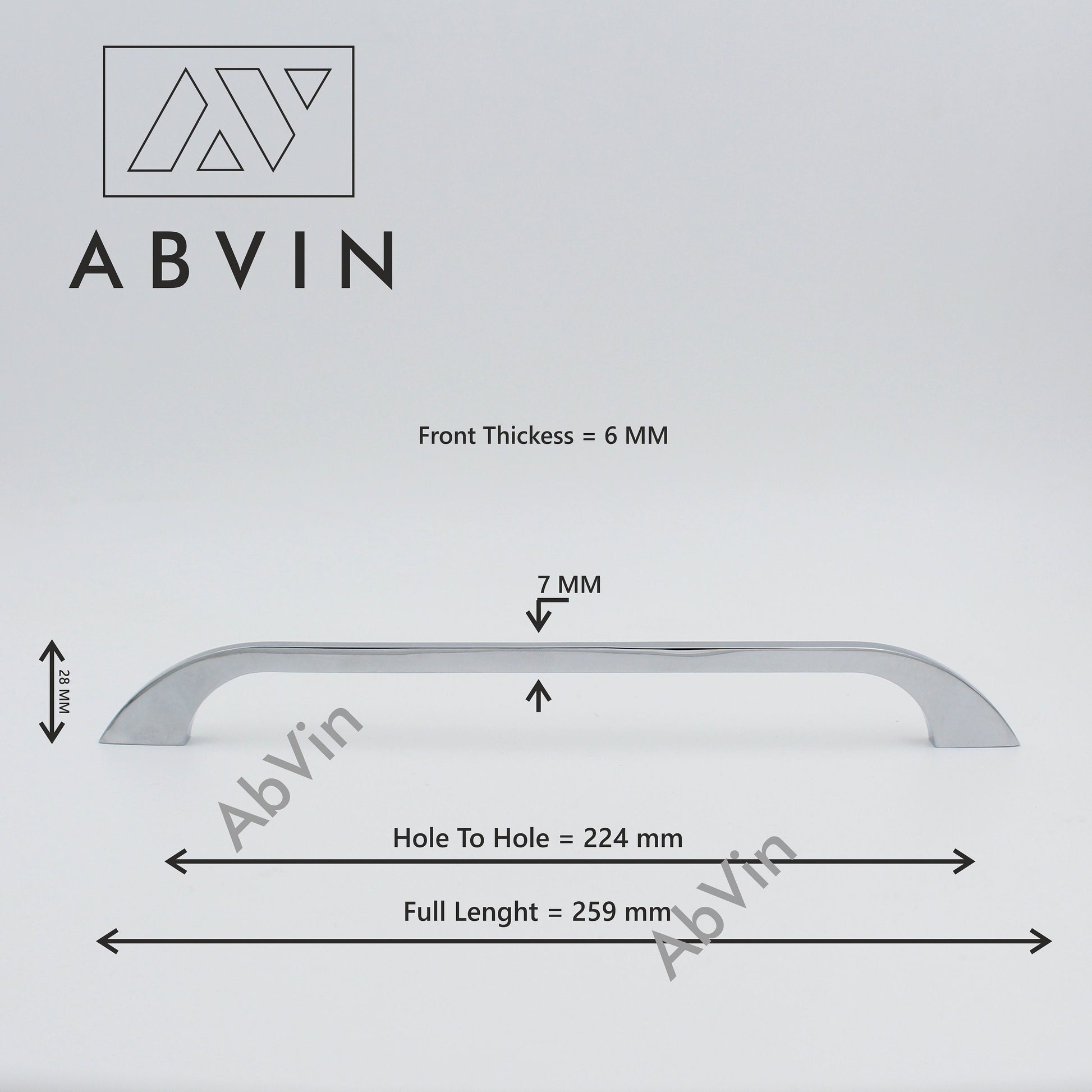 Length: 10.6 inch. Height: 28mm. Hole Centre: 224mm